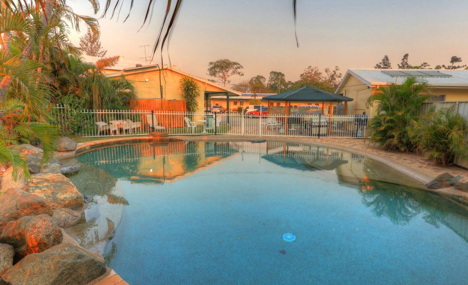 Our large pool is available for guests all year round. It is partially shaded, most important in summer, and has tables and chairs under shade cloth.